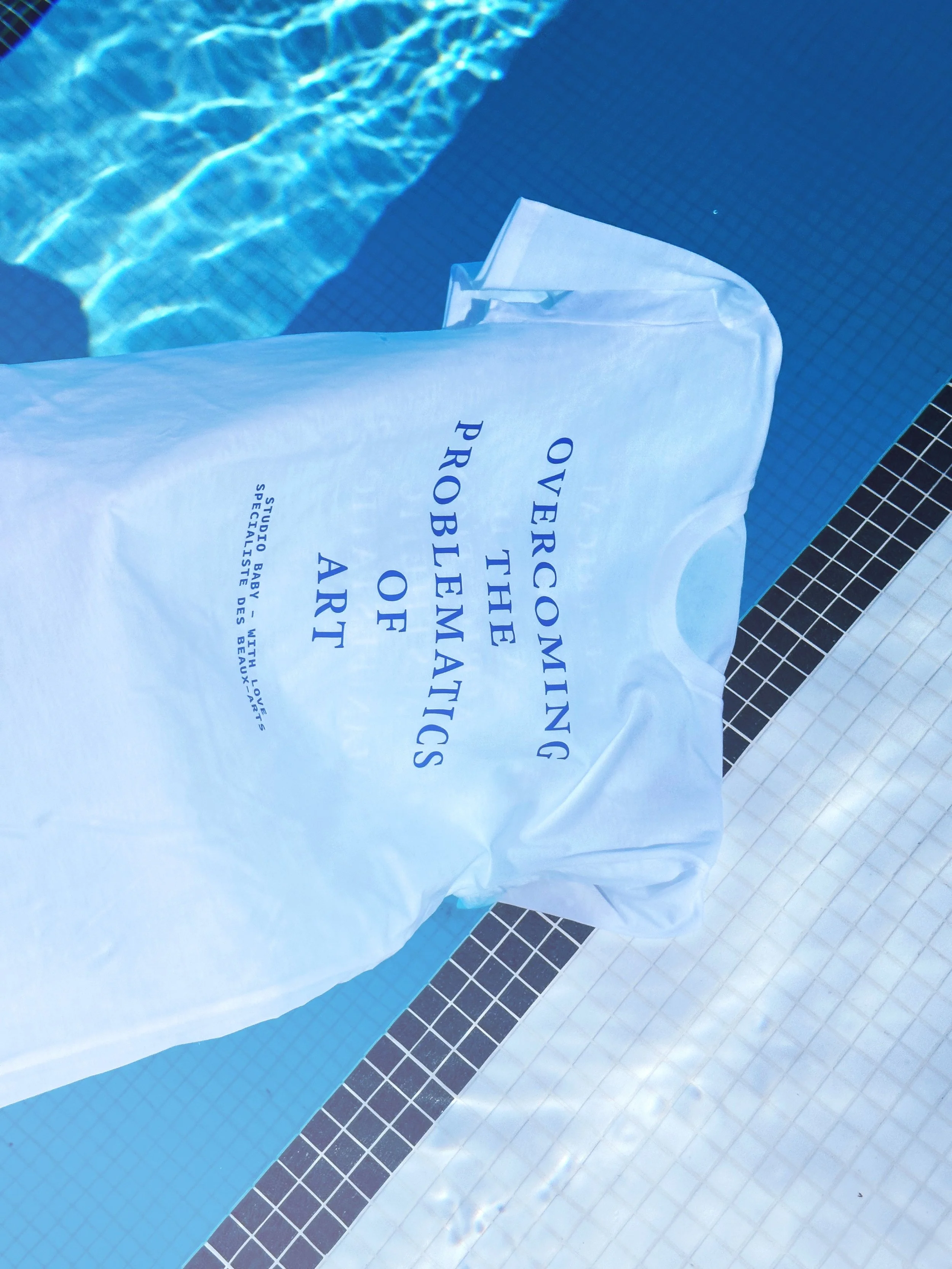 Embrace artful style and exclusivity with our limited edition white cotton t-shirt featuring a striking navy blue screenprint. Elevate your wardrobe with a piece that speaks to creativity and individuality.